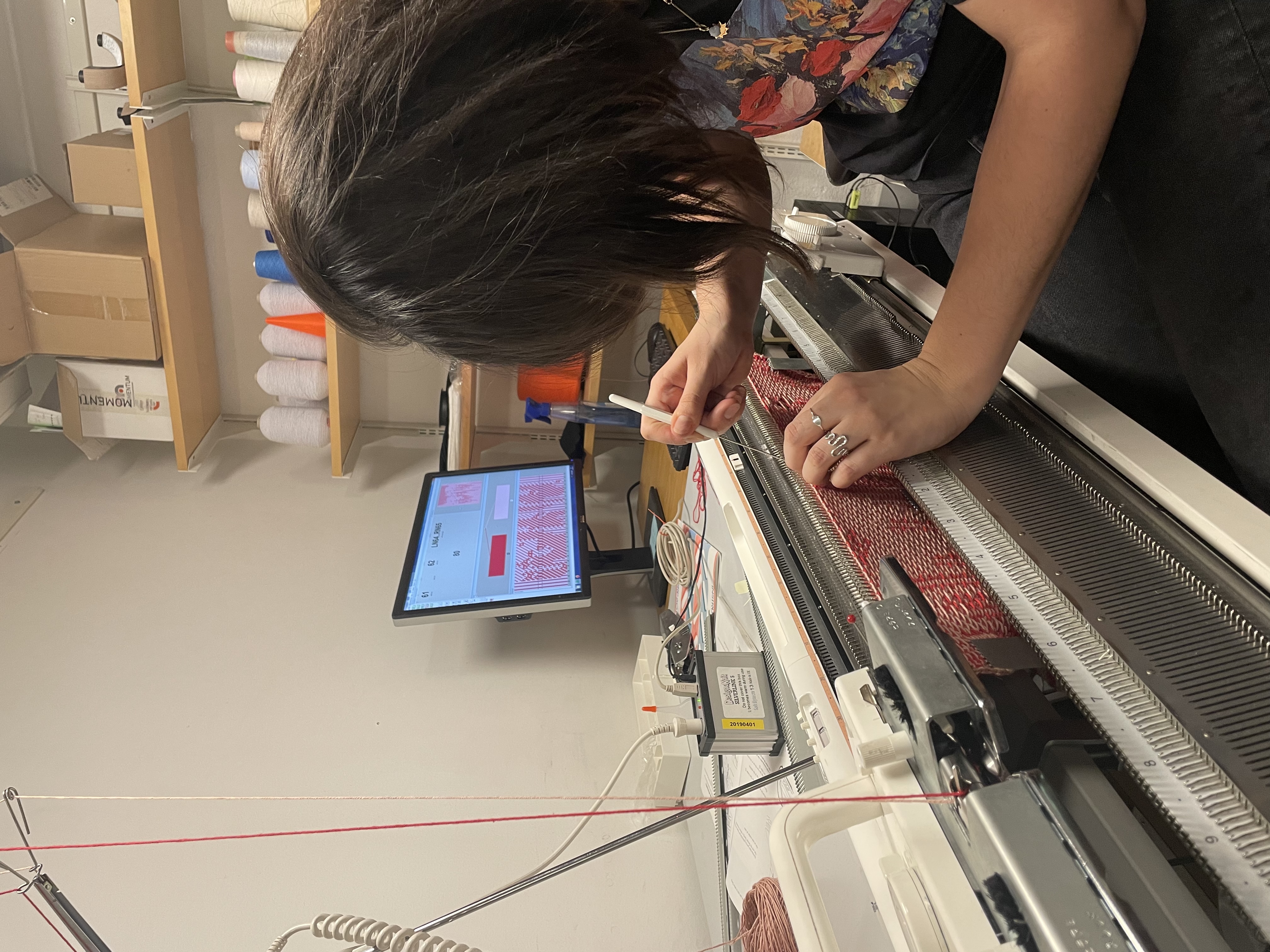 Block print, machine knitting and machine embroidery