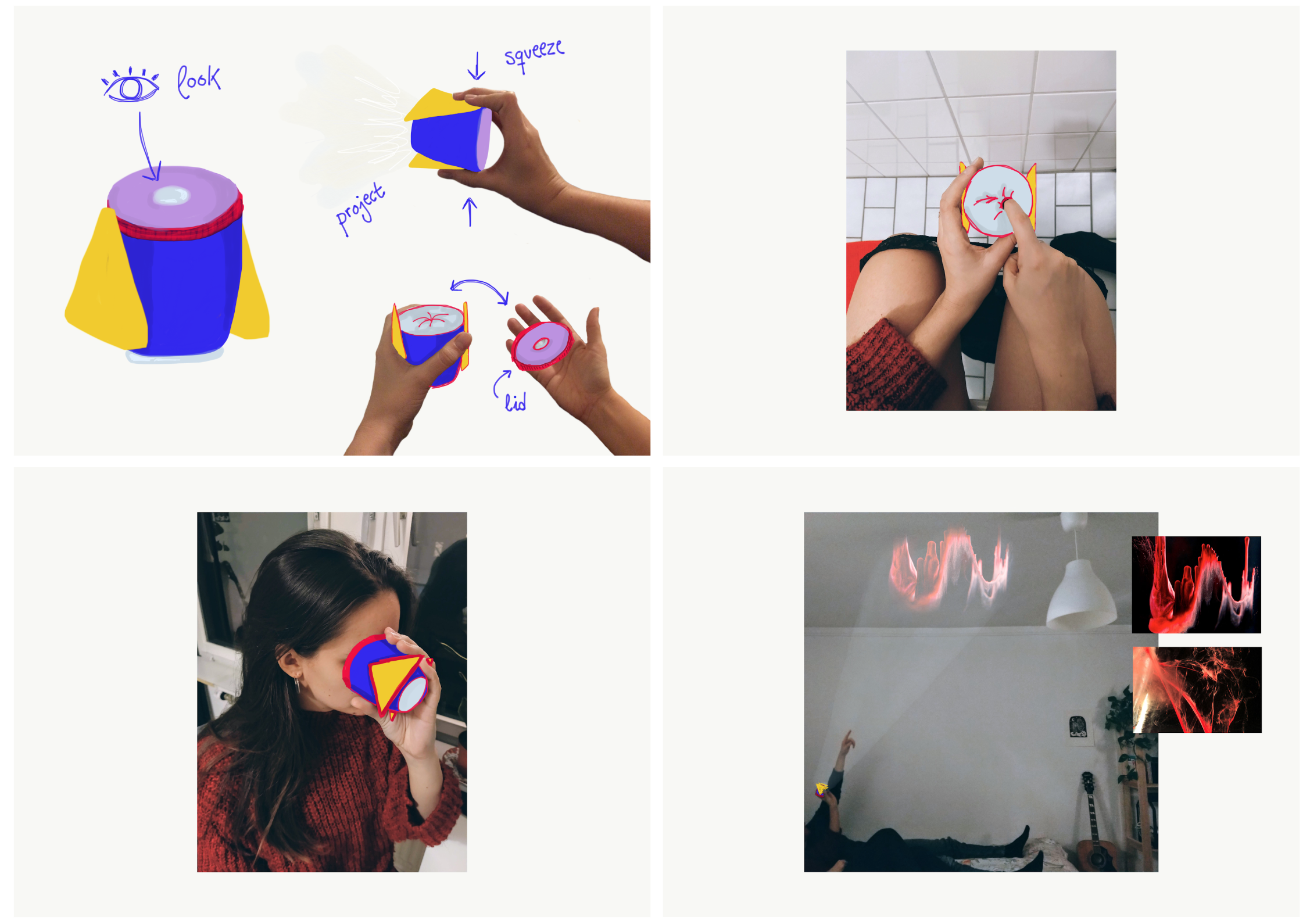 "See my blood" was a provocative device that magnified a drop of menstrual blood, creating visual patterns to observe by peeking into it or using the incorporated projector to share it with others. With this design, menstruation could quickly go from a private to a shared experience, underlining that sharing the experience of menstruation can be desired.